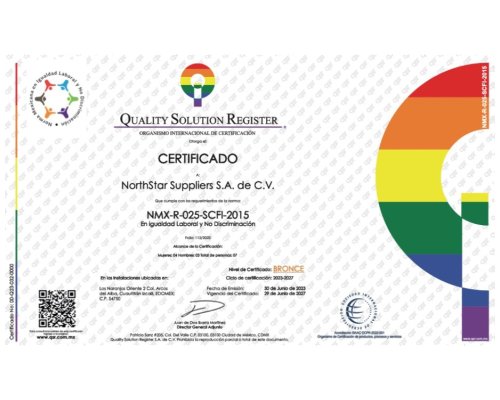 NorthStar Suppliers S.A. de C.V. esta certificada en la norma